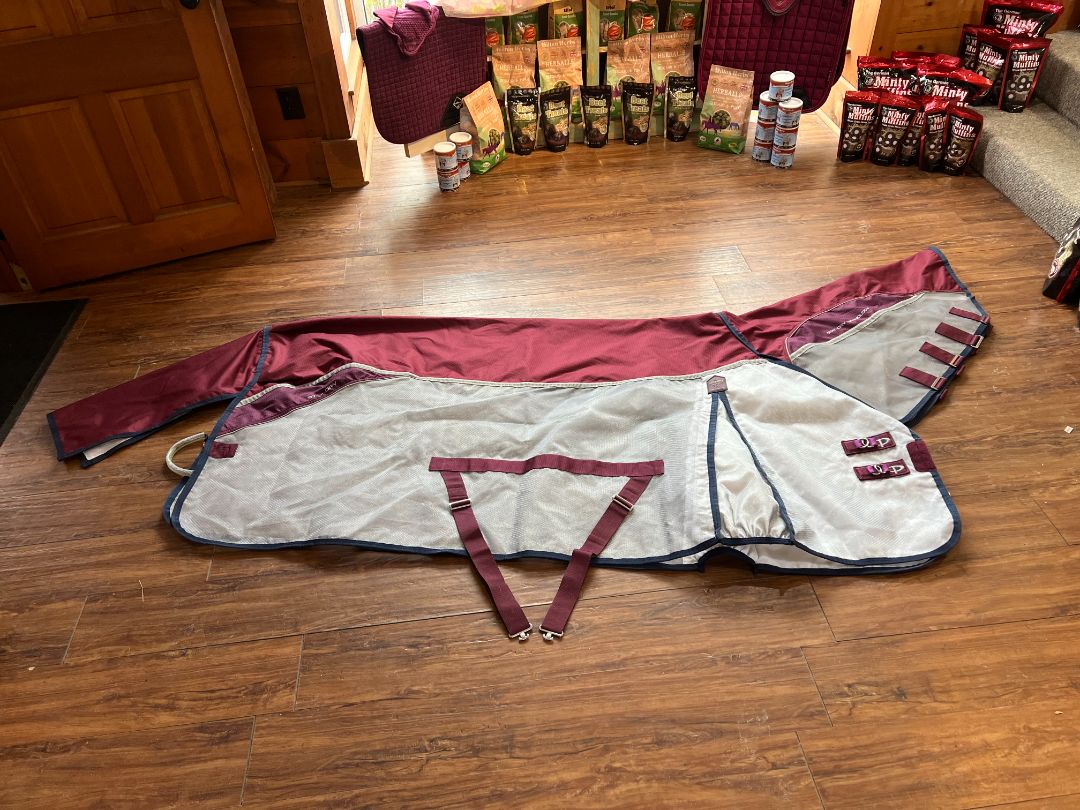 Premier Equine Stay-Dry Mesh Air Fly Rug Color: Wine & Grey Size: 78" Attached Neck...