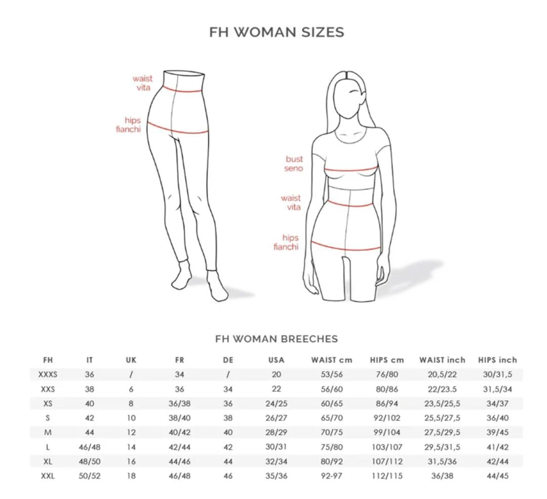 An advanced concept of FH fabric made these breeches possible: its elasticity and adaptability to the body makes it feel like a second skin and allows a complete ease of movement. The tailored cut and back pocket design fits all shapes and sizes for a refined and feminine look. Excellent for competition or schooling, and with our UV Sun Pro Technology, ENNIE protects you from UV rays while riding.