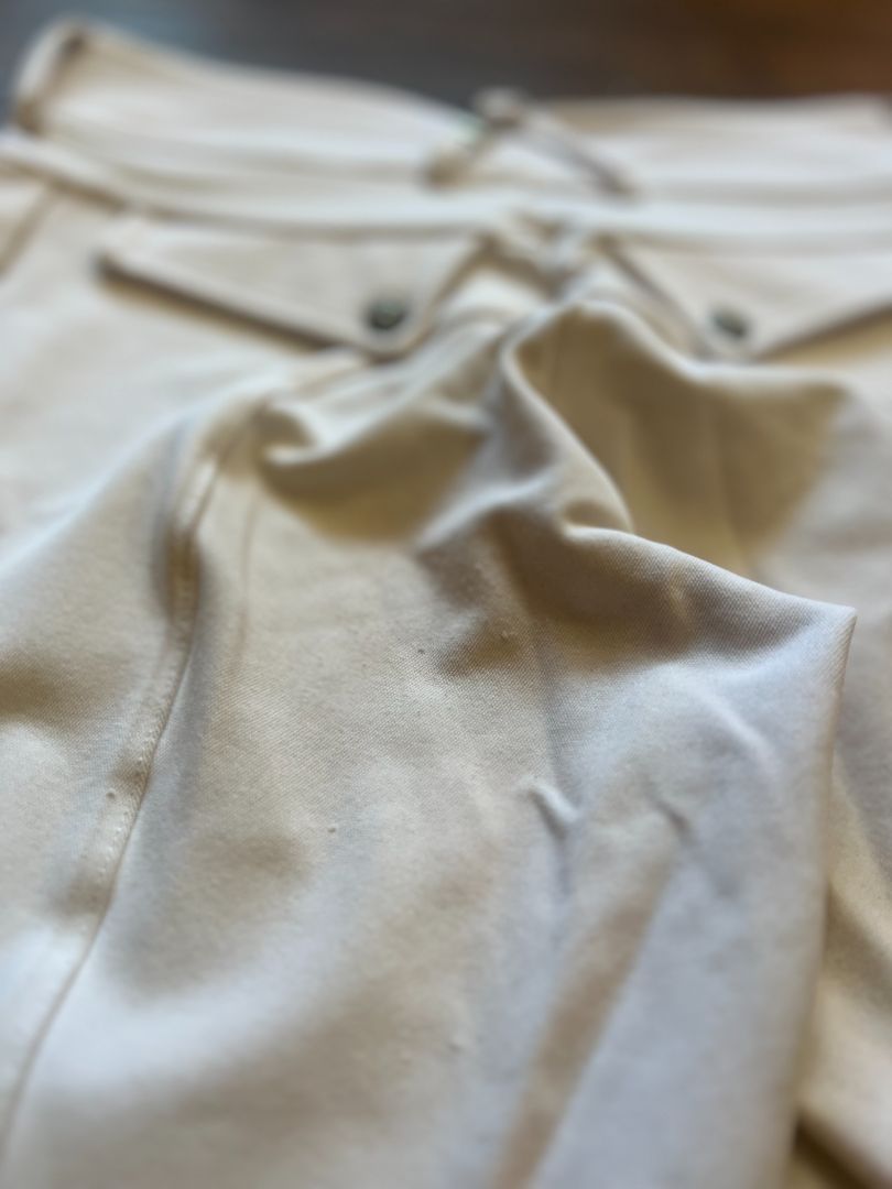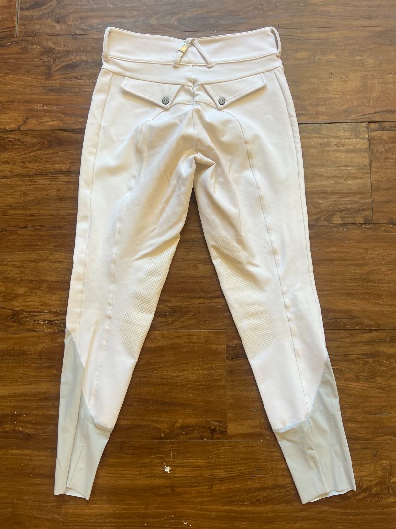 Good Used Condition - no major stains, some minor pilling on butt, very slight discoloration from saddle staining - still considered show condition.