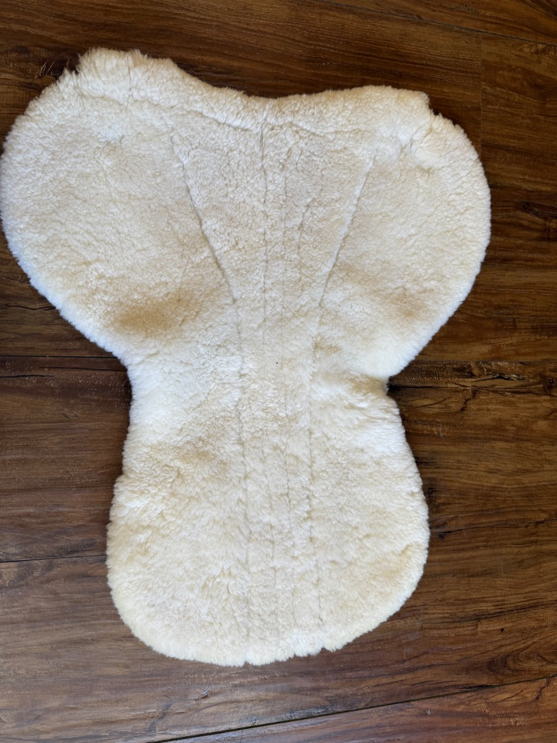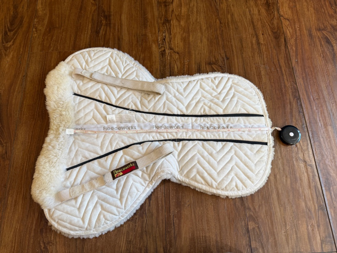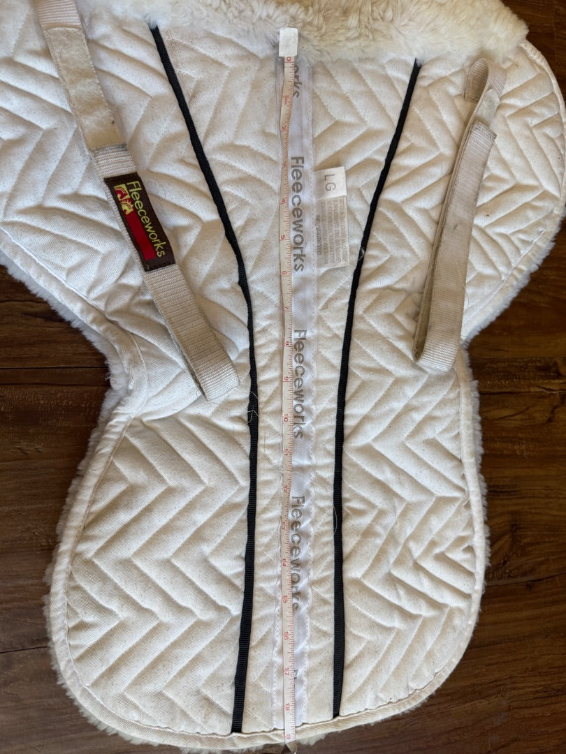 Fleeceworks' patented FXK technology provides comprehensive wither relief. The black cross elastic allows for vertical give of the pad through the horse's topline. This pad is anatomically correct. Versatile, this sheepskin half pad can be used with close contact, all purpose or dressage saddles.