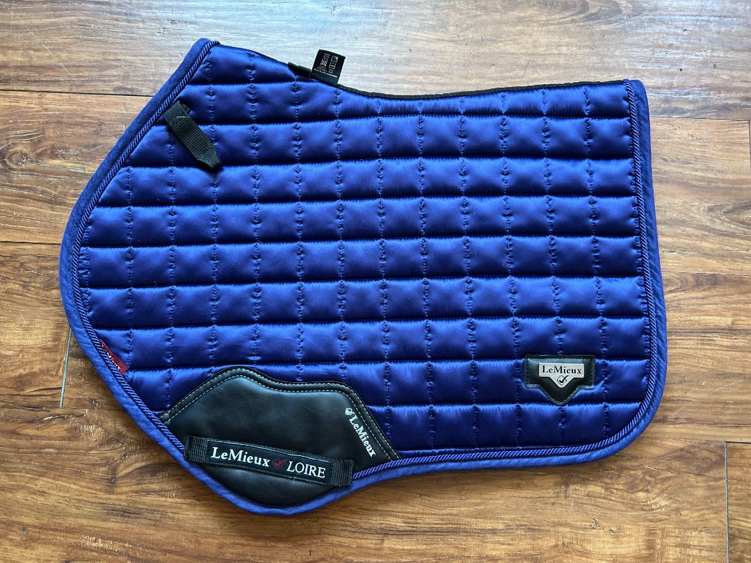 The textured faux leather girth protection area is complemented by an embossed logo and carries the usual signature LeMieux lower girth strap with its inner girth loops.