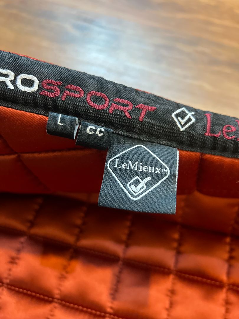 A unique LeMieux logo metal badge on a leather mount in the lower back corner provides a luxurious finishing touch."