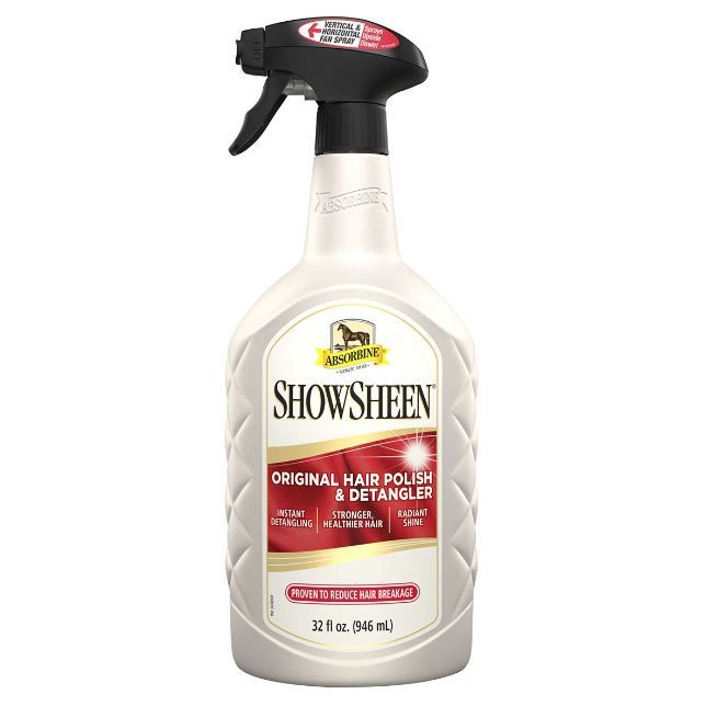 Enriched with pro-vitamins and silk proteins to help strengthen and promote longer hair, and help improve and revitalize appearance. Produces the finest showring shine on coat, mane and tail that lasts a full week! Repels dust and dirt and helps prevent stains. Coats each hair shaft to keep manes and tails tangle-free, while conditioning action reduces static fly-aways. Enriched with pro-vitamins and silk proteins to nourish coat and strengthen manes and tails. Dirt and mud fall off to save hours of grooming time. Dries quickly. Do not use on saddle area of horse.