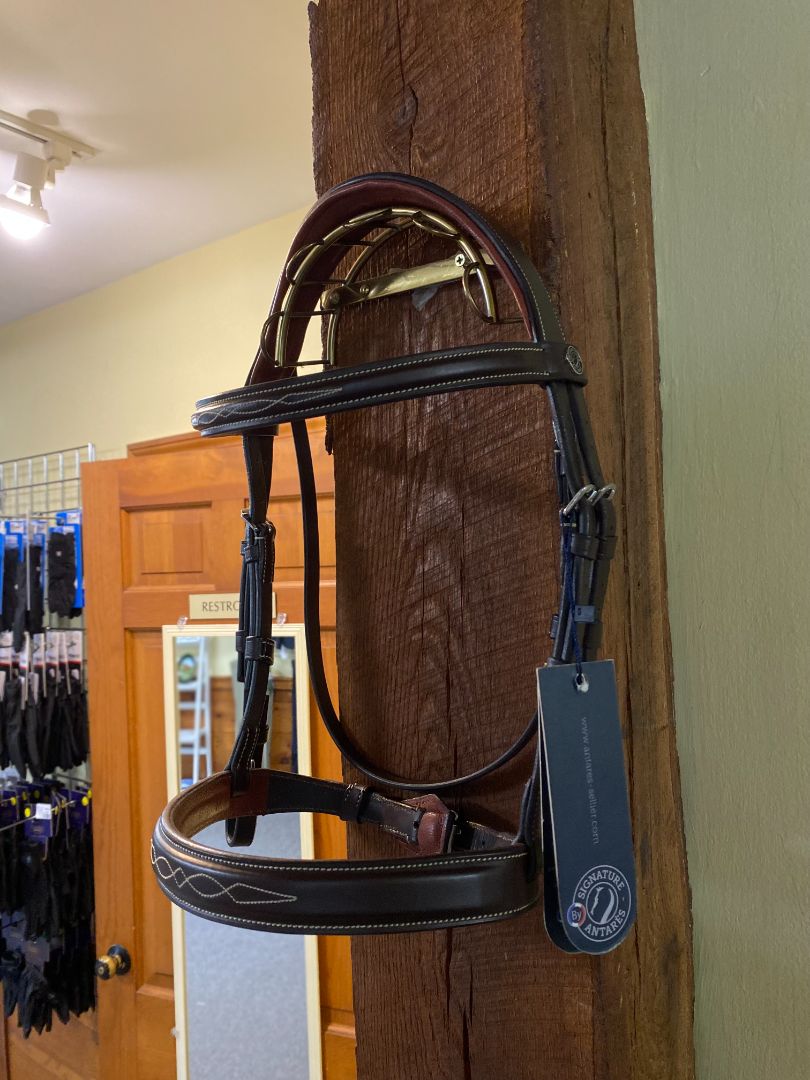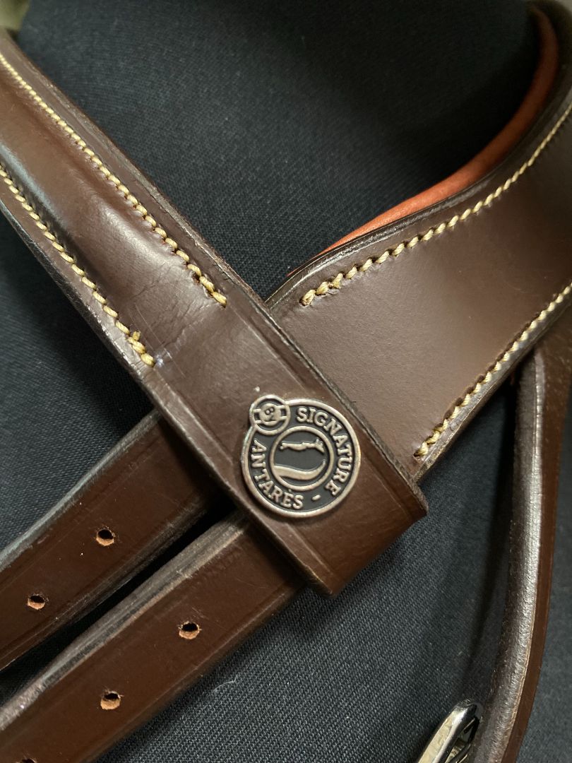 "This hunter bridle is made with high quality Buffalo leather, and features an anatomic crownpiece with soft cow leather padding. Fancy stitched browband and noseband."