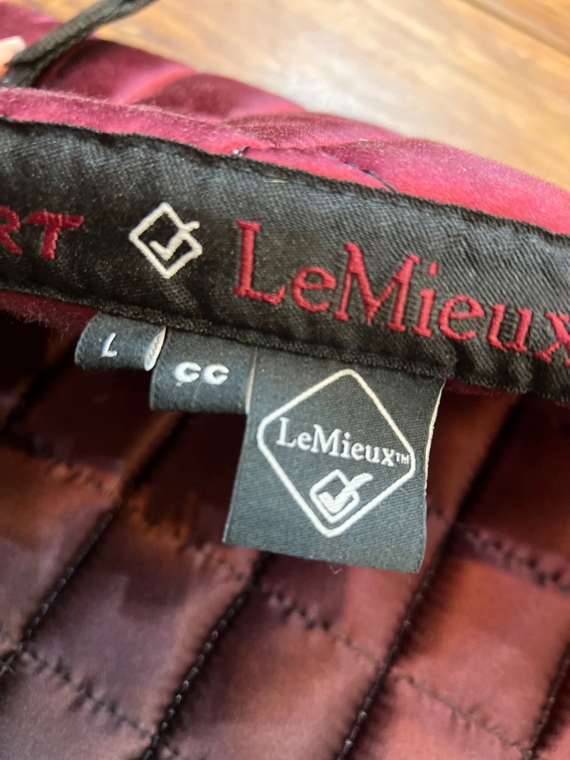The textured pu leather girth protection area is complimented by an embossed logo and carries the usual signature LeMieux lower girth strap with its inner locking loops, and the D-Ring tabs hold the pad securely to the saddle